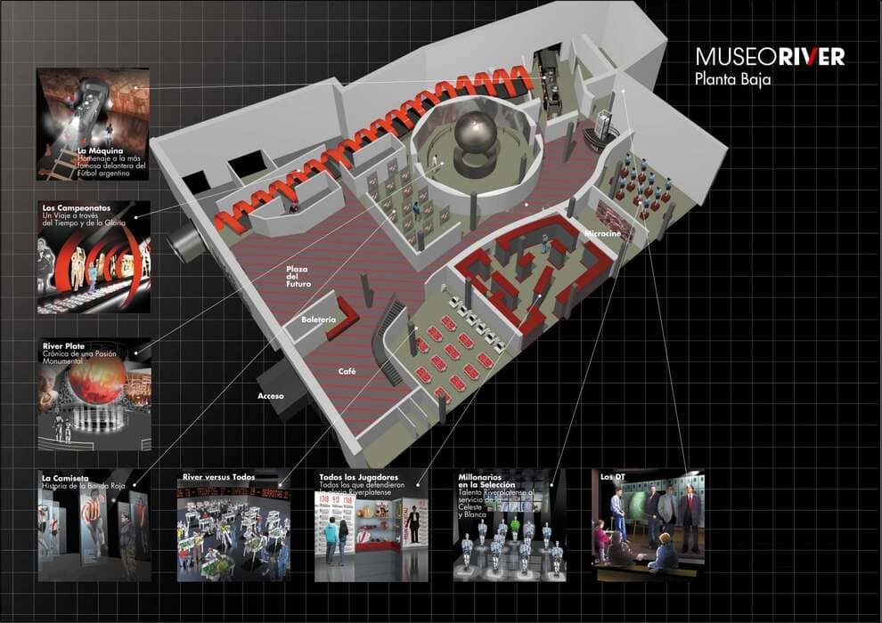 Ubicado en el Estadio Monumental, el museo abarca más de 3,500 metros cuadrados y presenta una variedad de exposiciones temáticas que reflejan momentos emblemáticos del club a lo largo de sus 120 años de historia.Entre sus principales atracciones se encuentra el «Túnel del Tiempo», que permite a los visitantes explorar cronológicamente las figuras clave, los logros y los trofeos más significativos de River Plate.